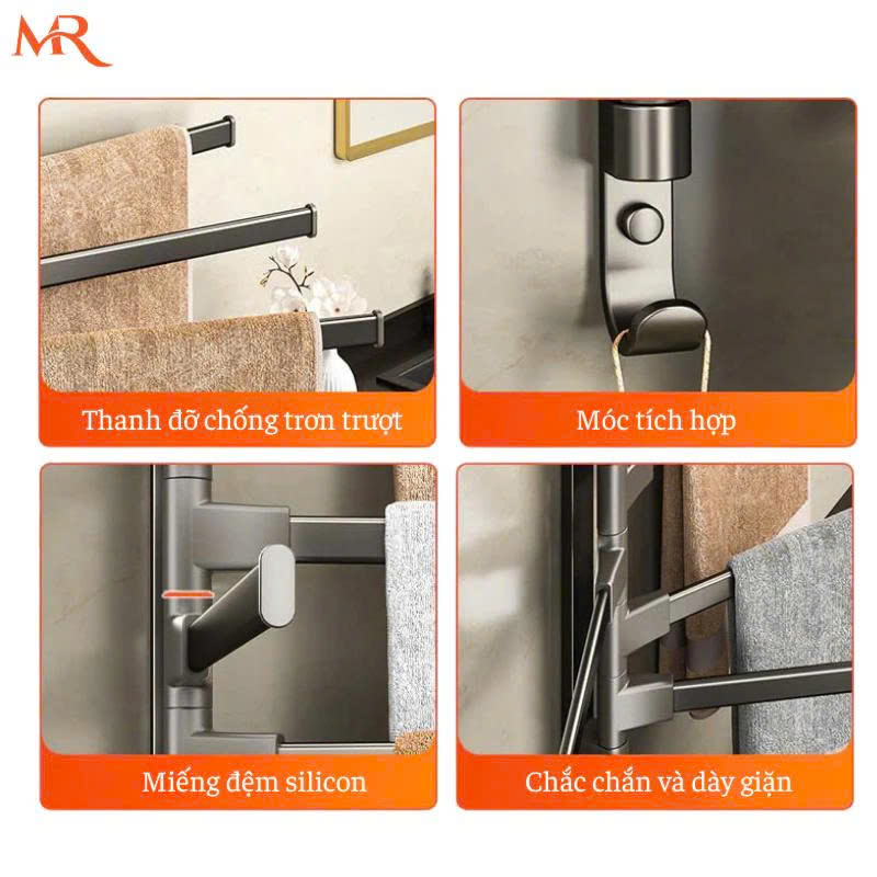 -Thiết kế tối ưu các thanh treo khăn có thể di chuyển xoay 180 độ tiết kiệm không gian cho căn phòng của bạn