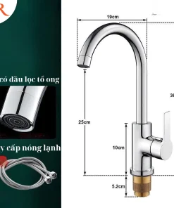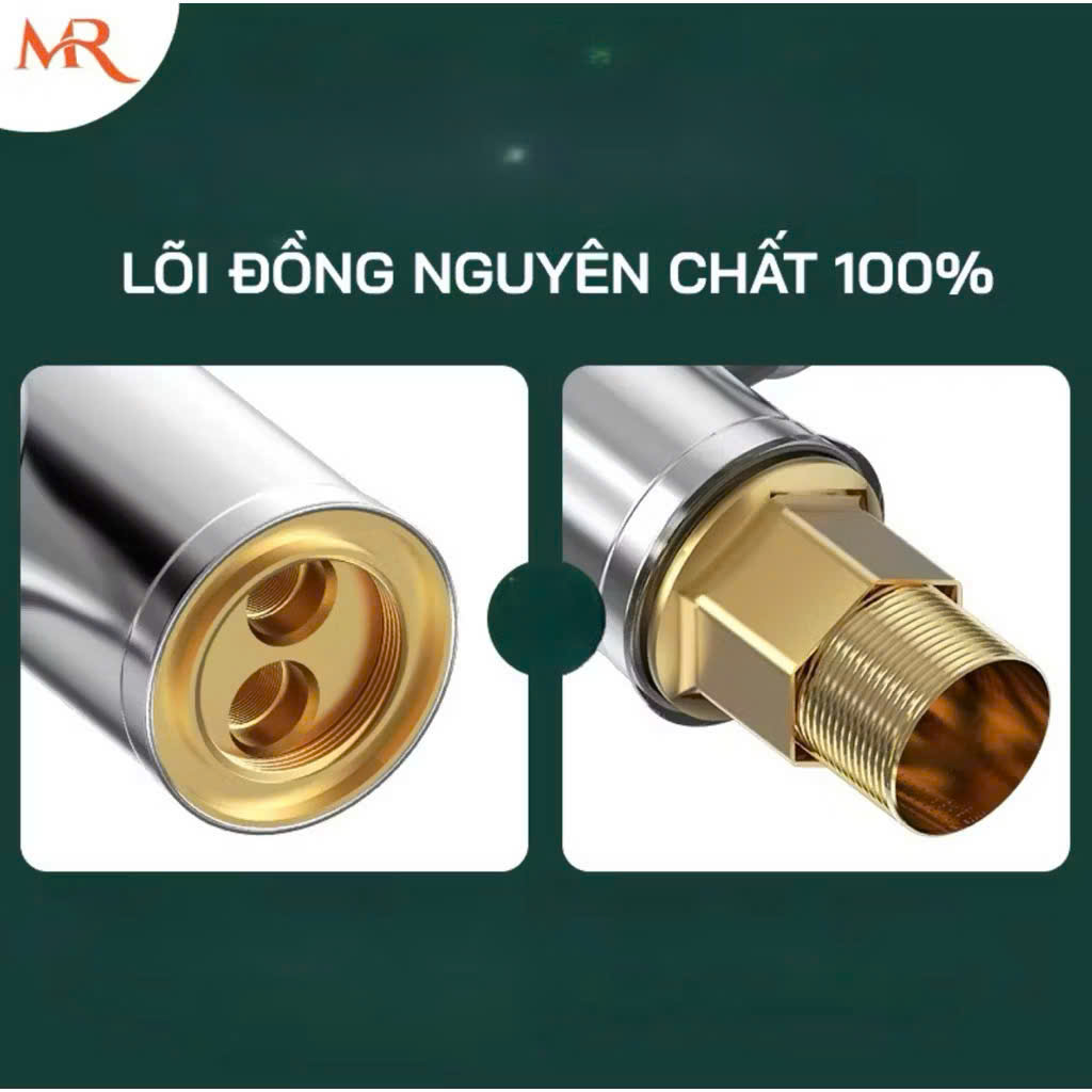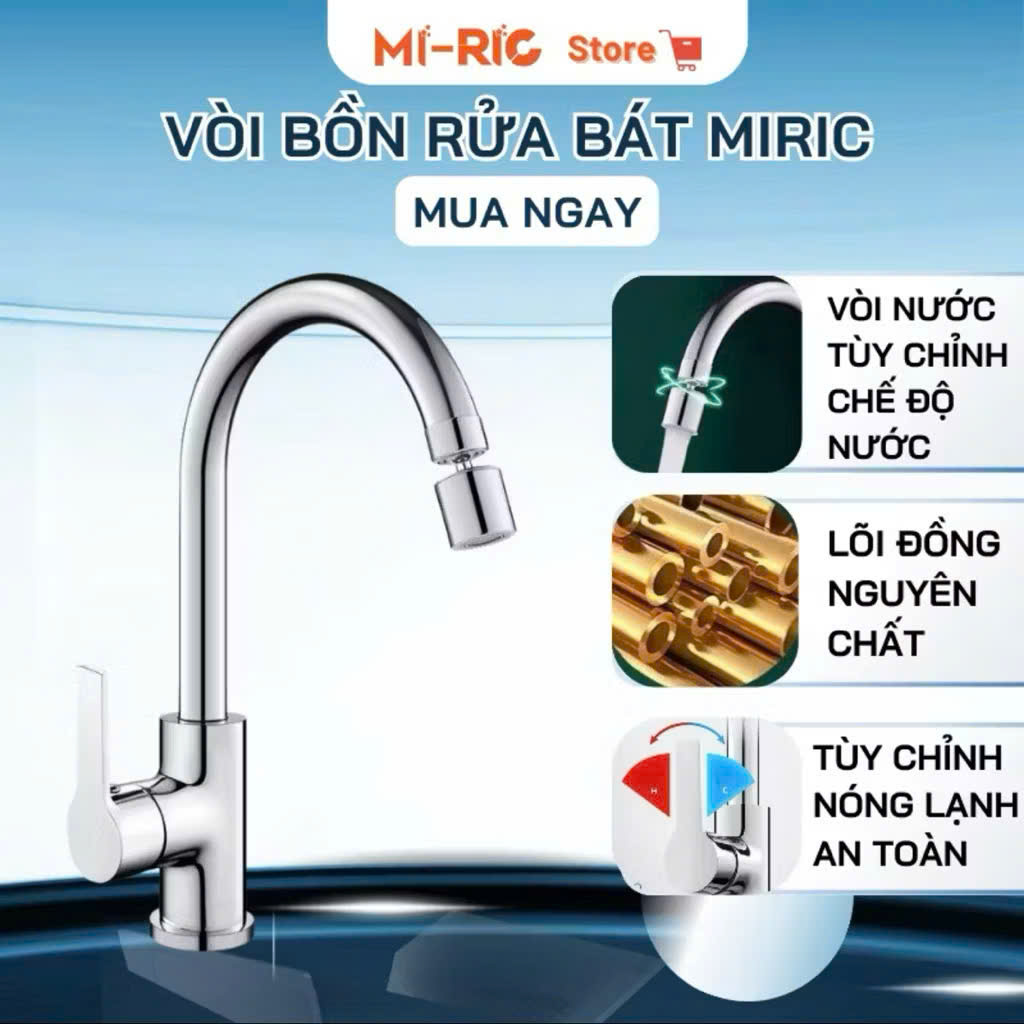 Vòi bồn rửa bát nóng lạnh miric chất lượng lõi đồng nguyên chất được phủ men nano chống bám bẩn