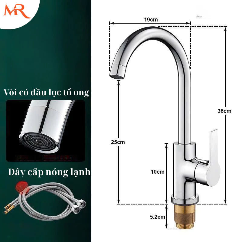 Vòi rửa chén| Vòi rửa bát nóng lạnh Miric 26 tặng đôi dây cấp nước inox