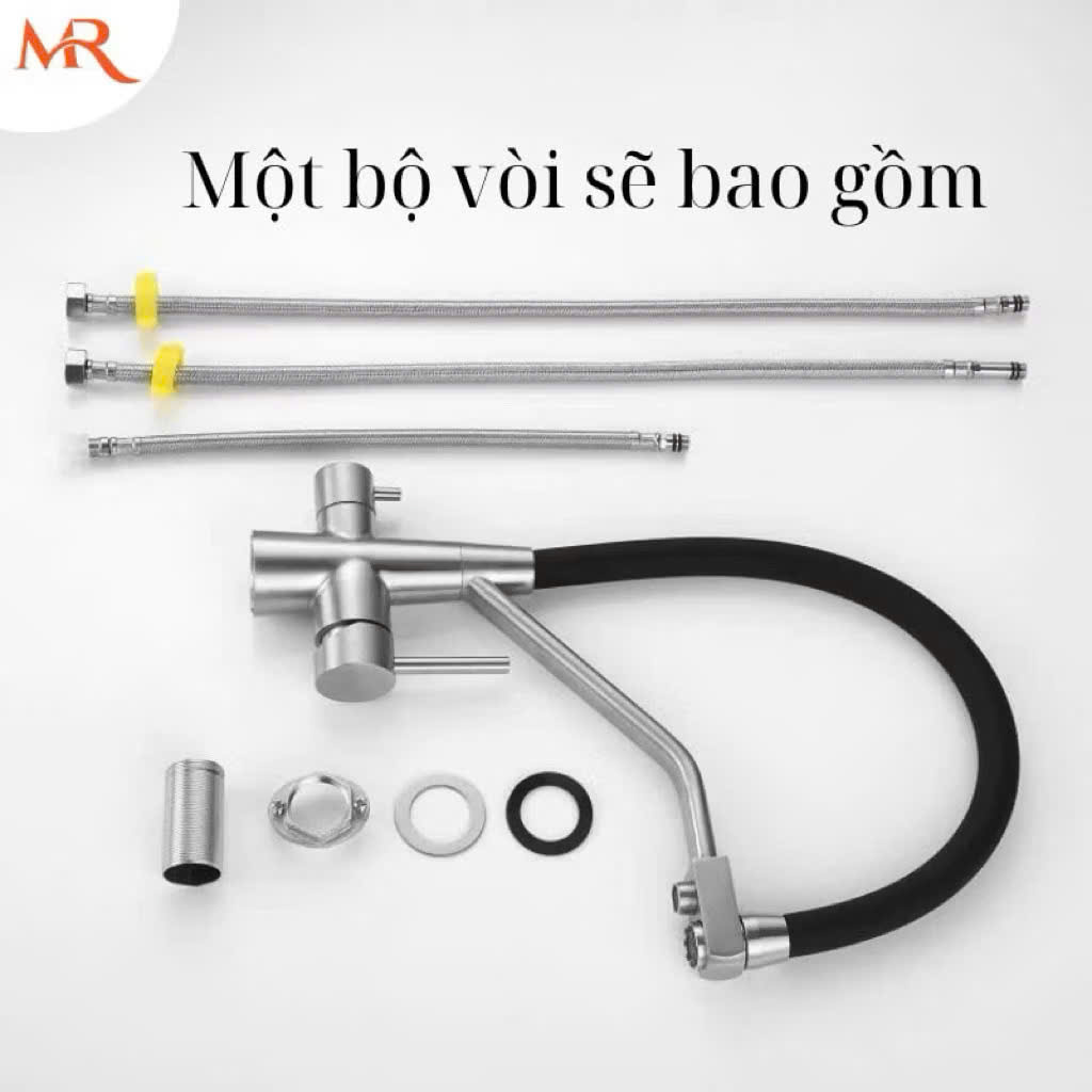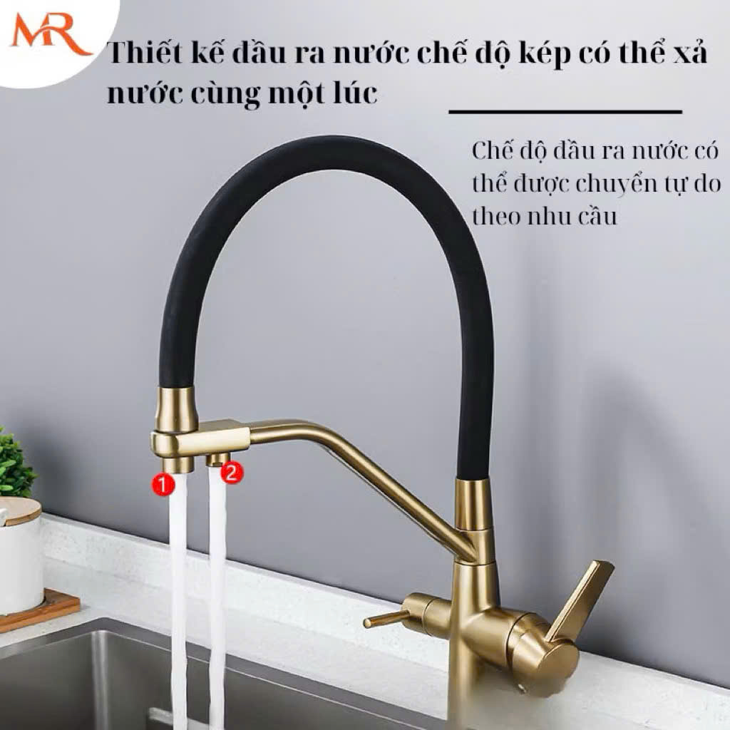 Chức năng: Vòi cần cao su 2 đường nước nóng lạnh + 2 chức năng xả (dòng chảy thắt eo, dòng tạo bọt khí).
